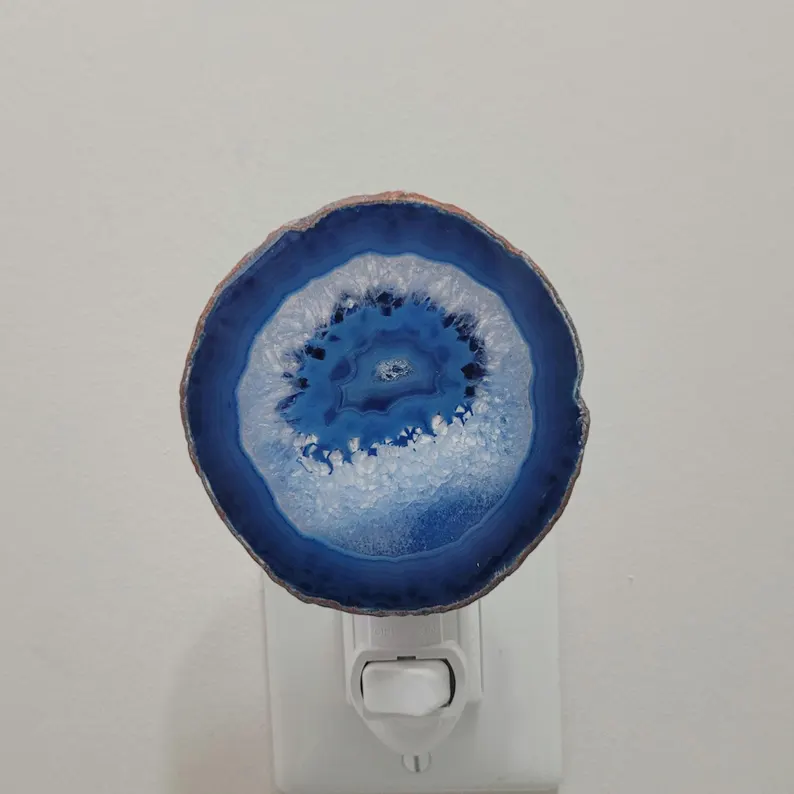 Brazilian Agate Nightlight with wall plug and bulb, Blue color available, Bedroom Night Light
