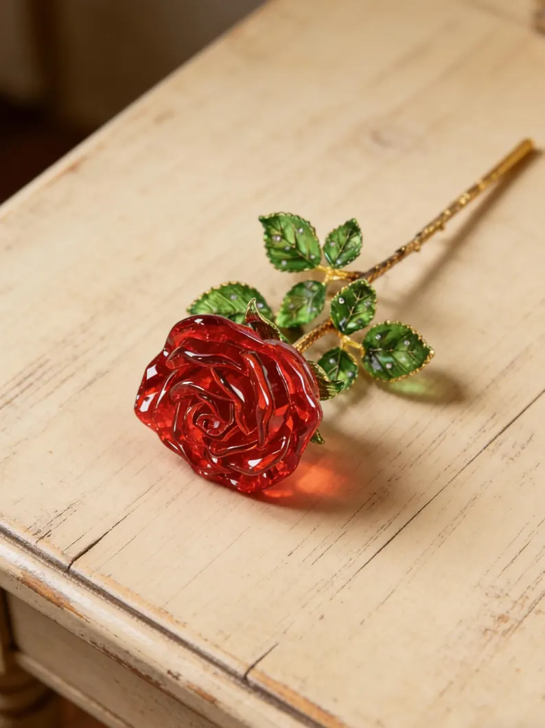 This lifelike crystal rose bouquet symbolizes noble and enduring love, making it a cherished token that will inspire happiness and romance. With this stunning crystal ornament, you can preserve the essence of your love for many years to come.